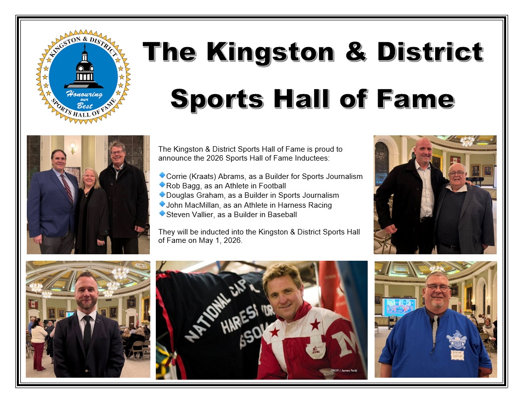 NOTE: Each nomination is reviewed by the Kingston & District Sports Hall of Fame Selection Committee and the newest class of inductees will be voted on and recommended to the Board of Directors in December and will be announced in early January. The process of selecting each class of Inductees is very extensive and follows guidelines established by our Kingston and District Sports Hall of Fame Constitution and Bylaws.